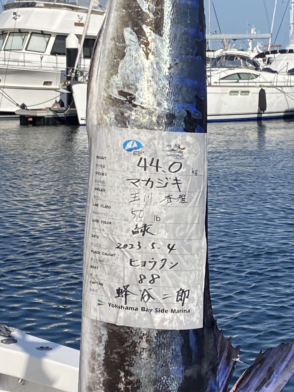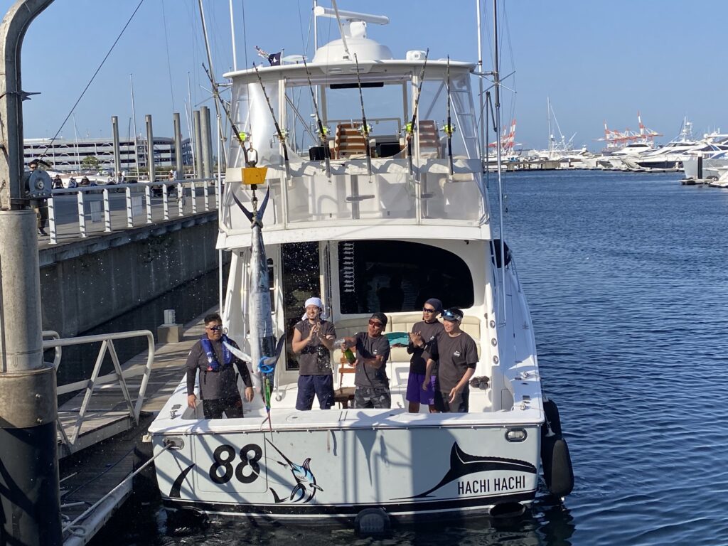 88様 おめでとうございます! 2023.05.04 ギャラリー 船名『88 』 5月4日 魚種 マカジキ 場所 ヒョウタン 重量 44kg ライン 50lb キャプテン 蜂谷二郎 様 アングラー 玉川秀雅 様